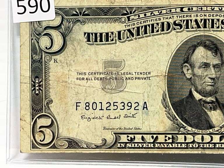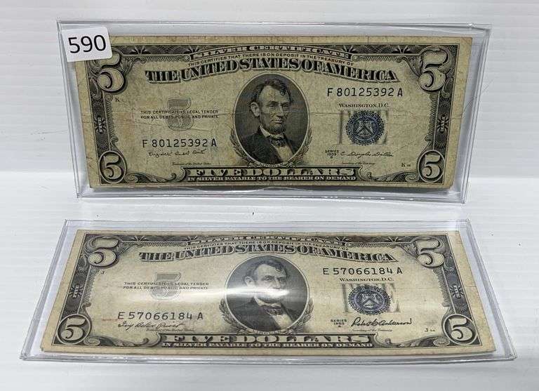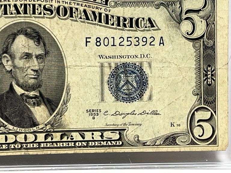 Series 1953-A and 1953-B $5 silver certificates, "Payable in Silver to the Bearer on Demand"