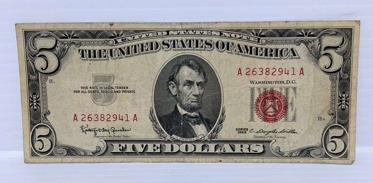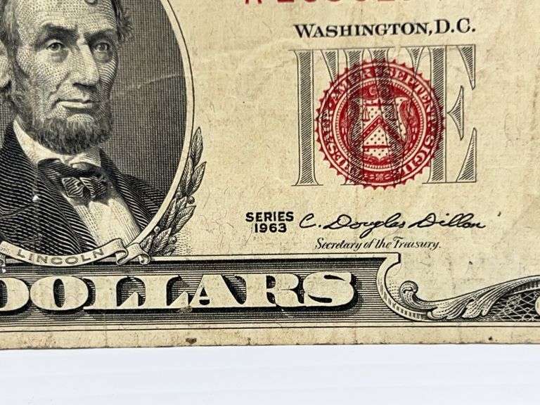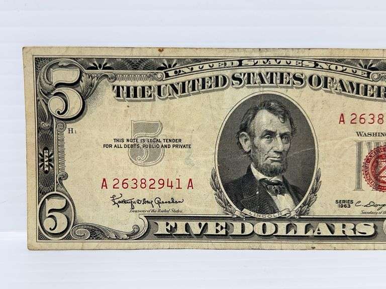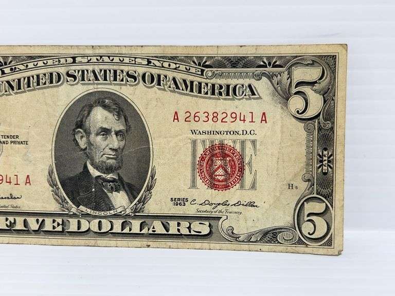 Series 1963 red seal $5 bill, nice
