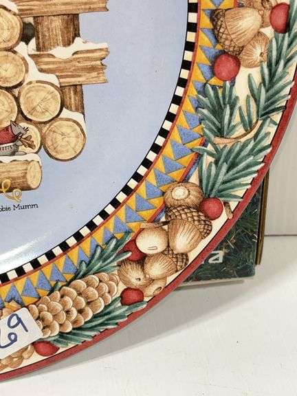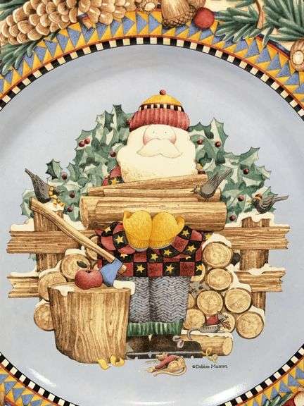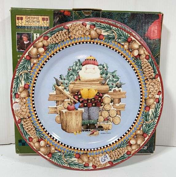 1998 Debbie Mumm collectible platter, Woodland Santa, box- 13"H, new, never used, box has wear