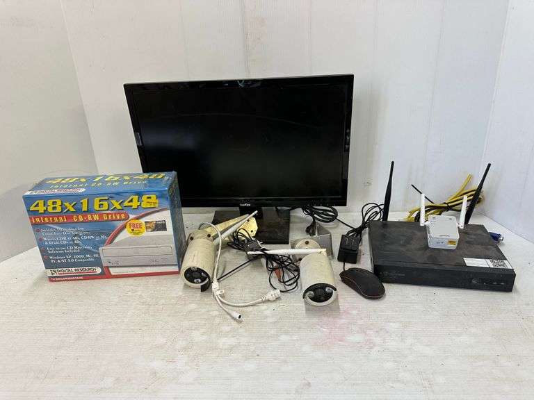 Security System: Internal CD-RW Drive (NIB), (2)-Surveillance Cams (as is), 21.5" Monitor, Transmitter Base, Wifi Extender. Actual Operating Condition Unknown.