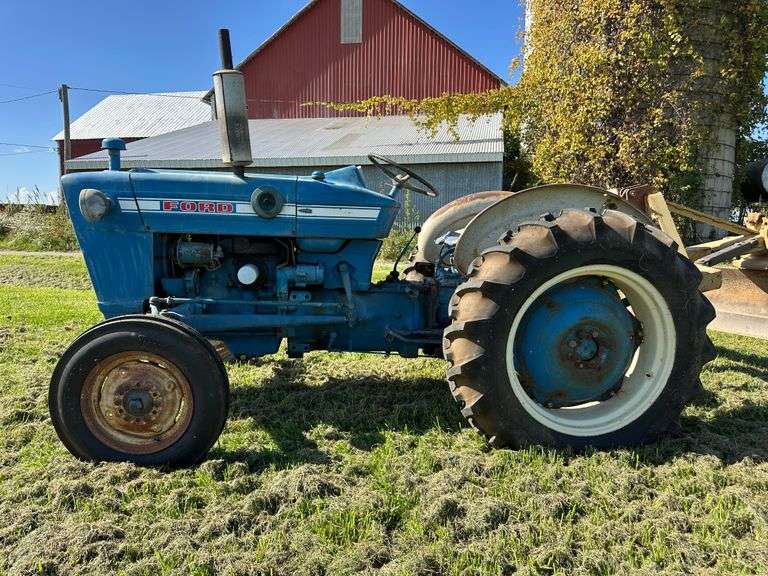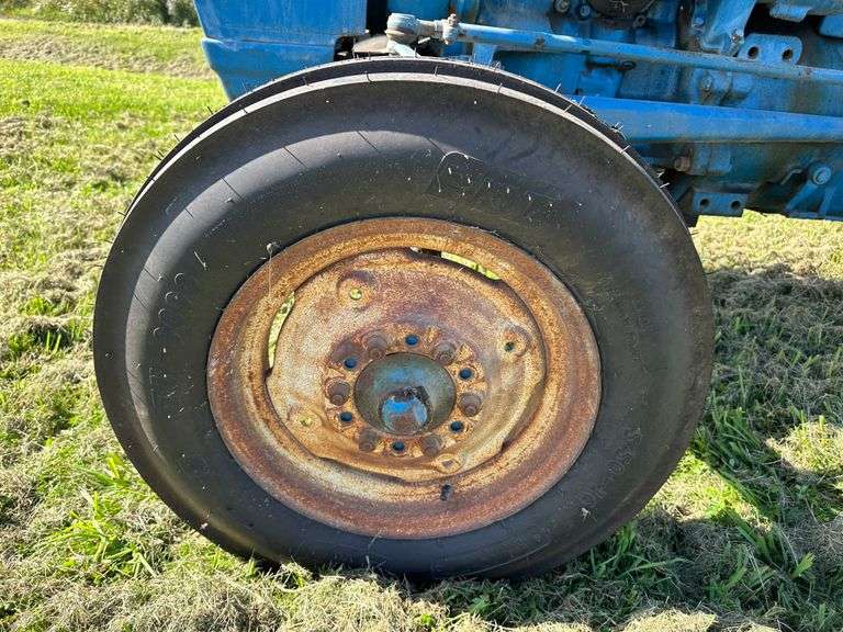 1968 Ford 2000 Gas Tractor, Ser. No. 221906, 3-pt., PTO, Drawbar, 5.50-16 Fronts (like new), 12.4-28 Rears (good), (Showing 1,401 hrs.), Runs. The oil drain threads in the drain pan are slightly damaged, but the plug currently holds the oil in. Some lights not working.