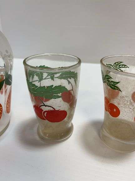 Juice pitcher, 7 1/2"H; (9) Glasses, up to 3 7/8"H