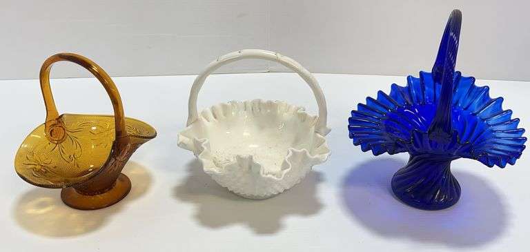 (3) Glass baskets, up to 9 1/2"H