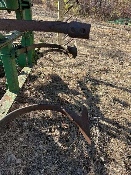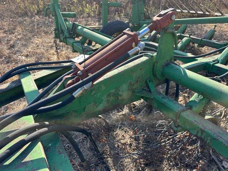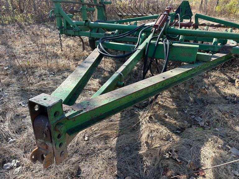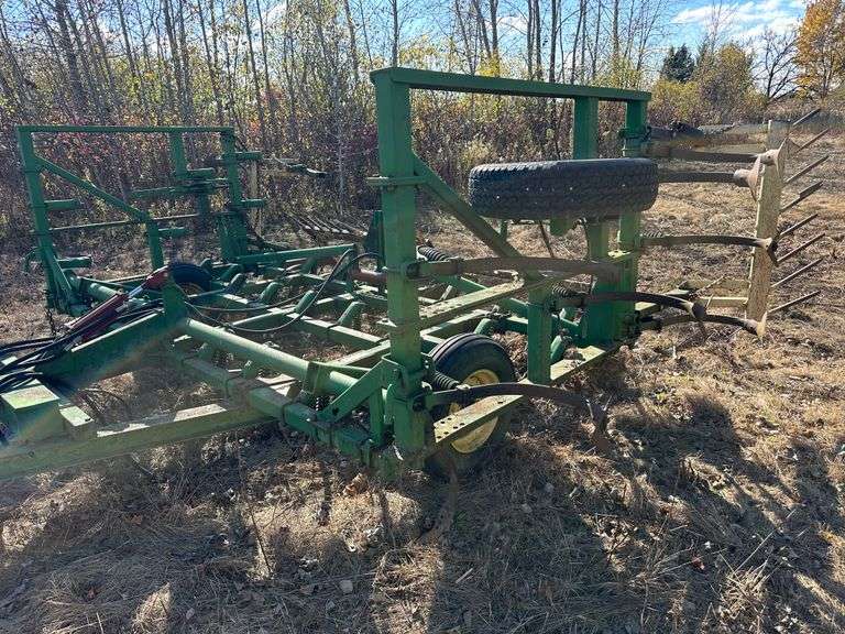 John Deere 20' Field Cultivator with Cylinder and Spike Tooth Leveler, Spring Loaded Shanks. Needs a tire and needs a weld on the spike tooth leveler.