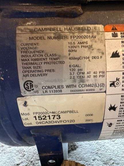 Campbell Hausfeld Air Compressor, 2hp, 6-Gallon and Portable Holding Tank, Approx. 10-Gallon