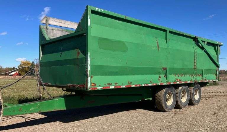 Item #27 Shop Built Silage Trailer, 10'W x 30'L x 7.5' Box Sides, Holds Approx. 25-Ton Silage, Air Brakes, Self-Leveling Air Suspension Truck Axles with 445-65-22.5 Tires, No Steering, Rear Grain Door, Simple Design, Works Great Control #:1053 | Completed $8,599.99 USD 2****2(122 Bids) Bidding complete | |