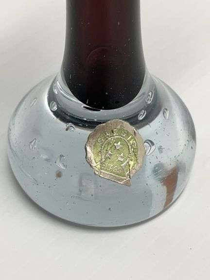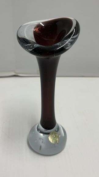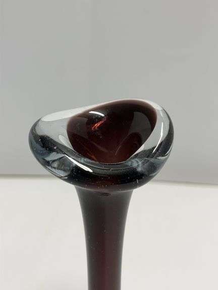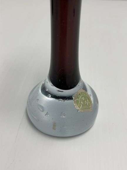 Mid-Century Aseda Art Glass Bud Vase with Purple and Clear Sections