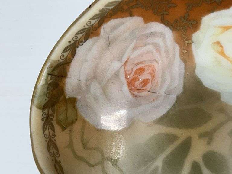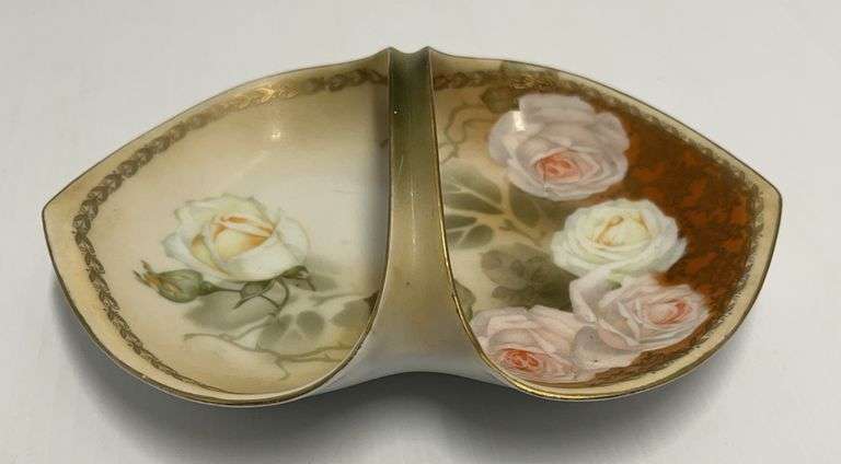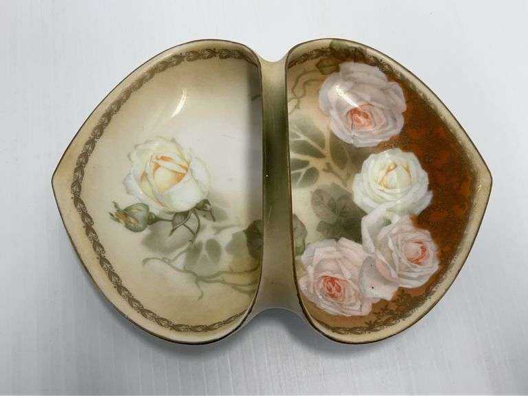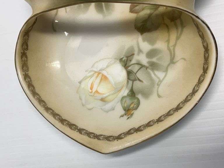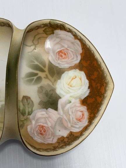 Hand Painted Porcelain Tiered Heart Shaped Serving Stand with Roses