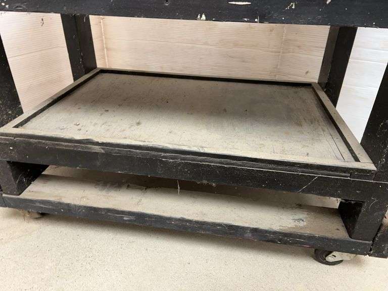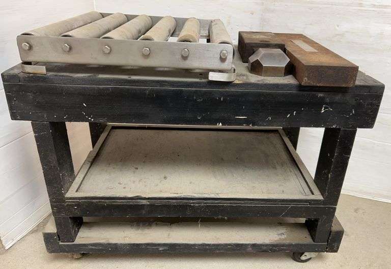 Wooden Rolling Cart, 33"W x 18"D x 24"H; Rolling Platform, 19" x 18"; (3) Heavy Steel Pieces, Up to 18"L