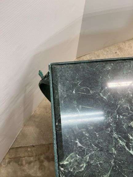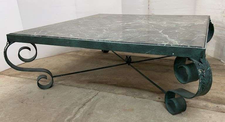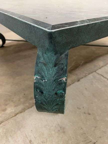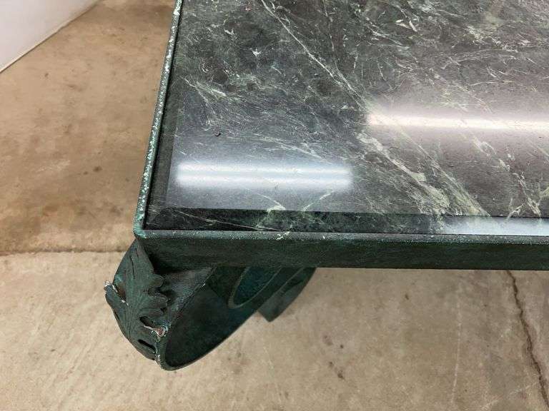 Large Green Metal Framed Coffee Table with a Marble Top