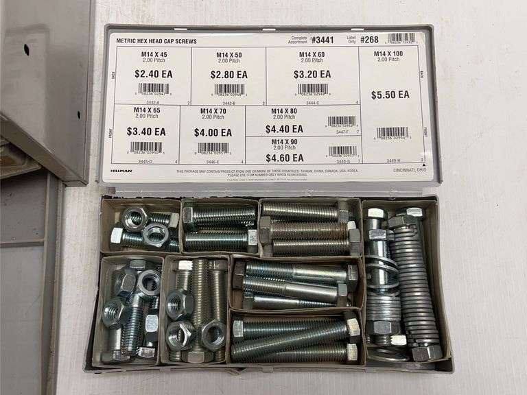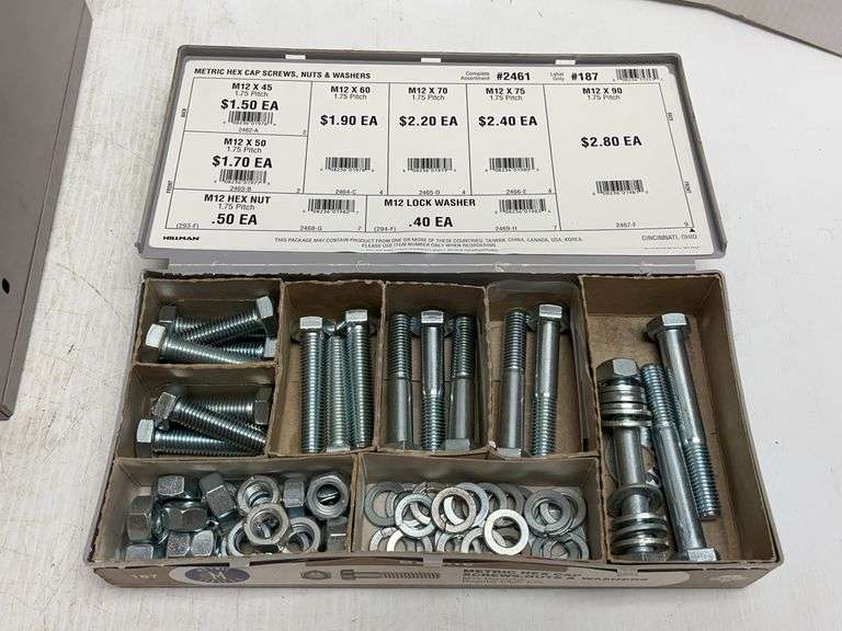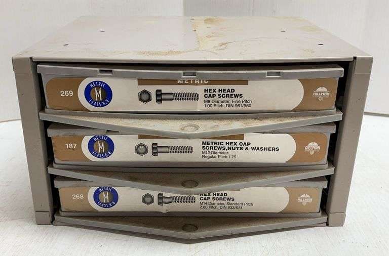 3-Drawer Cabinet with Various Hex Head Screws, Nuts, and Washers