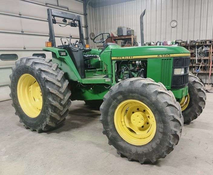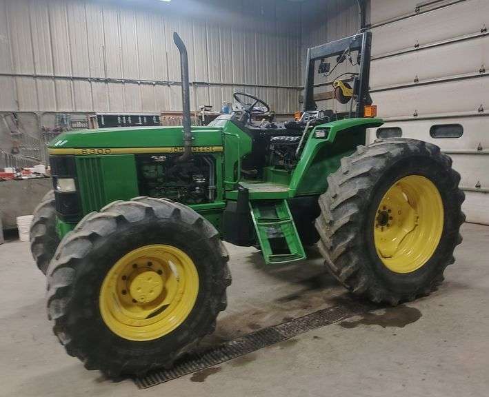 John Deere 6300 MFWD Tractor, (7698 Hours), Engine Starts and Runs Well, Transmission Shifts Hard but Works Fine, 2-Sets of Hydraulic Outlets, LED Work Lights, Firestone 380/85R24 Fronts, Goodyear 18.4-R34 Rears, 540/1000 PTO, Used it as an Auger Tractor, Food Plots and on 10’ Brush Hog, 3-Point Arms are NOT Included, Ser. No. L06300N103122