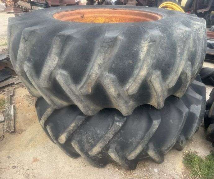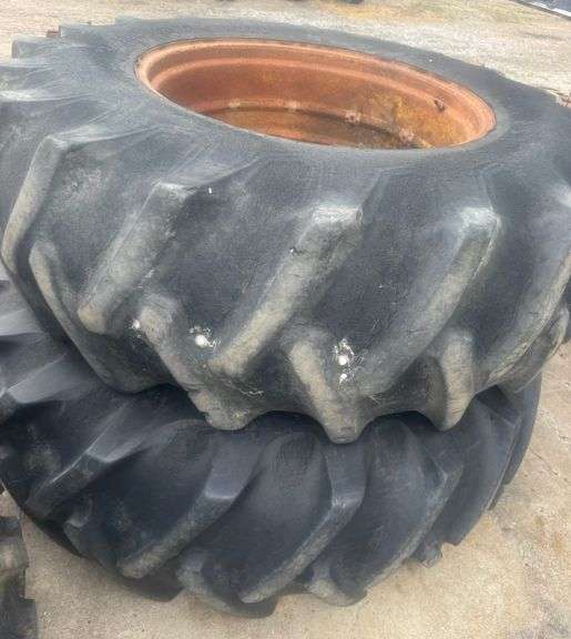 This item Selling ABSOLUTE! ~~~ Pair of 20.8x34 Tires on Double-Bevel S/U Rims, No Fluid in Them, Both Hold Air, NOTE: No Sunday Pick-Up
