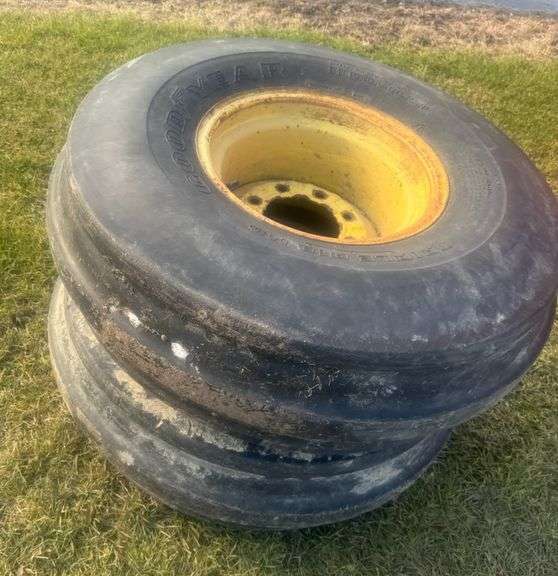 This item Selling ABSOLUTE! ~~~ Pair of 11.00x16 Tractor Front Tires on 8-Hole Wheels, Good Tread, Decent Pair of Tires, NOTE: No Sunday Pick-Up