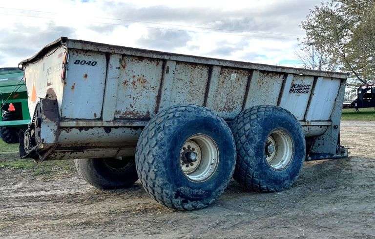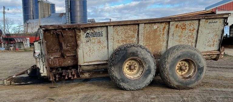 Knight 8040 Spreader, Unknown Year, One Tire is 2-Years Old, Two Tires are 1-Year Old, One Tire Getting Tired, Spreader Still Works but Getting to Need Some Repair