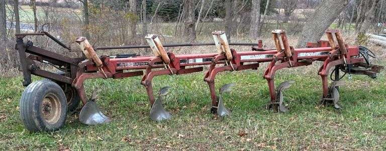 This item Selling ABSOLUTE! ~~~ International 735 Vari-Width Plow, 5-Bottom, Auto-Reset, No Coulters, All Wear Parts in Decent Shape, All New Hydraulic Hoses, Back Wheel Mounting Brackets are Bent but Usable As Is or Can be Fixed, Book and Extra Wear Parts Included