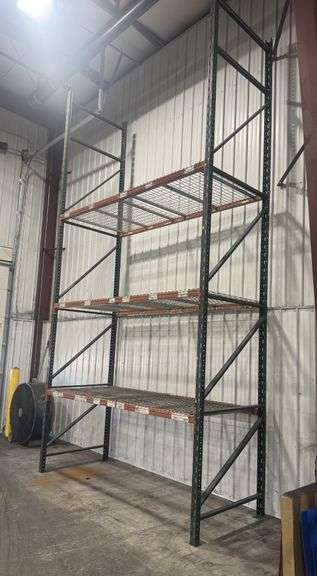Pallet Racking, Includes: (2)-Uprights, 20'H x 4'D; (8)-Crossbars, 10'L; (8)-Wire Mesh Shelves, 4' x 5', All Excellent